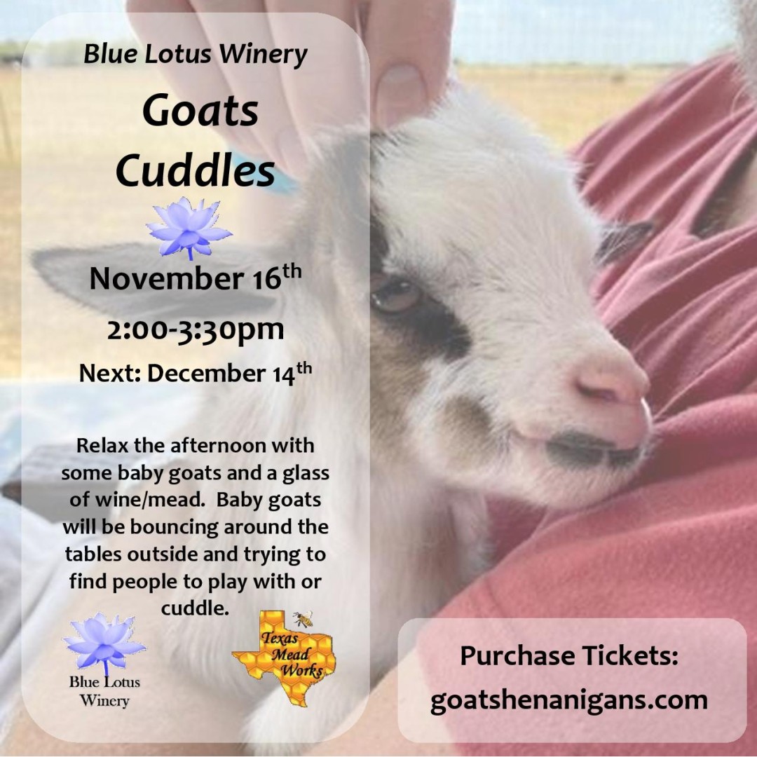 Spend the day surrounded by playful goats while enjoying a glass of wine and beautiful weather. It’s the perfect way to make lasting memories with family and friends—all while sipping on 100% Texas Wine and Mead.