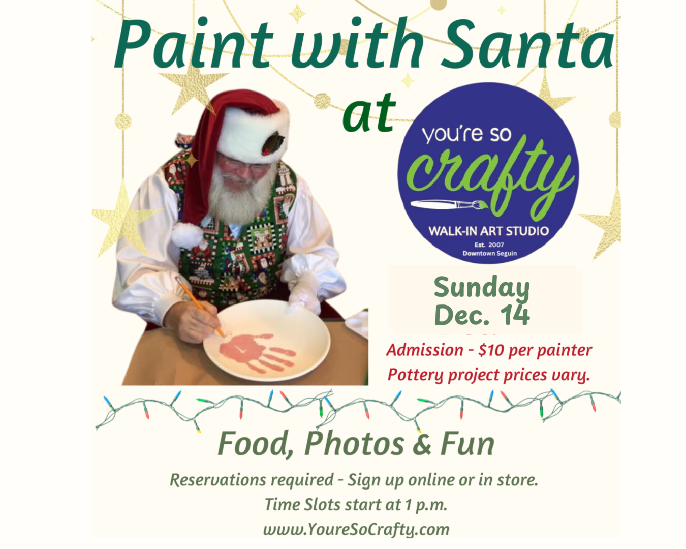 **Because of time and space limits - we are ONLY painting Santa & Me items (1 item per paid reservation). This is NOT the time to paint your special commemorative plates for grandparents and gifts. It'll be much more relaxing to pop in and paint those when Santa is not here!