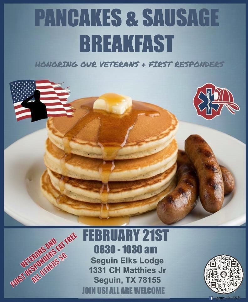 Home Veteran and First Responder Breakfast February 21, 2026 8:30 AM –10:30 AM Overview Veterans & First Responders Breakfast Veteran and First Responder Breakfast1331 CH Matthies Jr. Seguin, Texas 78155DetailsOpen in Google Maps Save Seguin Elks Lodge 1331 CH Matthies Jr. Seguin, Texas 78155 (830) 401-9887 Website